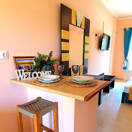 Det ligger 1 km fra Agios Stefanos Strand, mens logas beach cliff ligger 3 km væk.